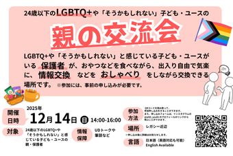 プライドハウス東京レガシーには、24歳以下のLGBTQ+や「そうかもしれない」と感じている子どもやユースの方を対象にしたイベントや相談プログラムがあります。