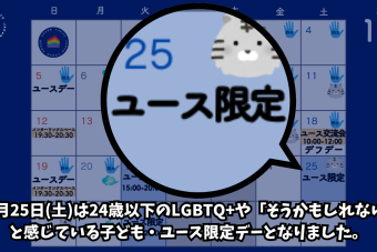 プライドハウス東京レガシーには、24歳以下のLGBTQ+や「そうかもしれない」と感じている子どもやユースの方を対象にしたイベントや相談プログラムがあります。